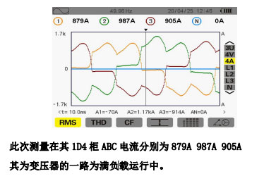 4.1 現(xiàn)場電能質(zhì)量概況 福安市同康金屬制品有限公司出線柜1D4和1D6地點主要負(fù)荷為生 水泵設(shè)備 1.1D4 柜水泵電流為 A 152A B 162A C 137A ,電流最大值為 162A, 電壓值為 400V 左右。諧波比列ABC三相開機時 THD 值 65.7% 58.4% 57.3% 主要諧波分布 3 次和 5 次最大值 A 63.5A B74.5A C78.5A。1D6 柜電流為A 248A B 258A C 240A ,電流最大值為 258A,電壓值為 400V 左右 ,最小值為 240V,最大值為 258V。 諧波比列 ABC 三相開機時 52.6% 57.6% 57.2% 主要諧波分布3次和 5 次最大值 A 113A B123A C116A 。 第 9 頁 共 20 頁