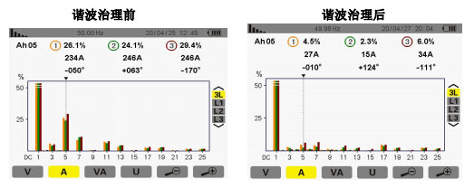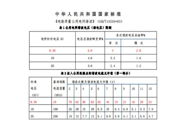 在未安裝有源濾波器是經(jīng)過測量 3 次和 5 次諧波較為嚴(yán)重其 ABC 三相諧波電流為 234A 246A 246A 中THD值(諧波畸變 率)為 26.1% 24.1% 29.4% 未達到國家標(biāo)準(zhǔn)。在安裝有源濾波器后并調(diào)試完成再次測量諧波 3 次和 5 次諧 波 ABC 三相諧波電流分別為 27A 15A 34A 中的THD值(諧波 畸變率)為 4.5% 2.3% 6.0%幾乎達到國家標(biāo)準(zhǔn)規(guī)定數(shù)據(jù)內(nèi)。使企業(yè)節(jié)省了電能,經(jīng)濟效益顯著提高,預(yù)測節(jié)能達到百分 之 5 點到 10 點的區(qū)間。使變壓器和用電設(shè)備有了安全保障 提高了工作效率保障用電安全。(下圖如國家標(biāo)準(zhǔn)電能質(zhì)量 表)