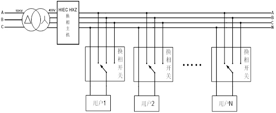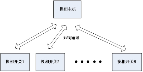 三相負荷不平衡自動調節(jié)裝置系統(tǒng),由一臺主機及多臺分機(15~20臺)組成,應用于配電變壓器低壓側(220/380V),主機及數(shù)據(jù)采集裝置安裝于配電變壓器低壓側,各分機分別安裝于終端用戶表前側,通過無線通訊方式組成調控網(wǎng)絡,系統(tǒng)主機采集配變各相負荷實時參數(shù),經(jīng)計算后以無線通訊方式控制各分機,各分機采用專用換相開關組件,將所接入的用戶負荷實時切換到合適的相別上,使配變低壓側負荷基本保持在平衡狀態(tài),從而達到減少線路損耗、變壓器損耗和延長變壓器使用壽命,提高供電質量的目的。